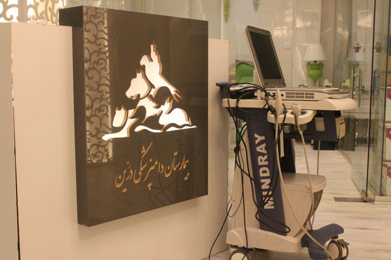 بیمارستان دامپزشکی شبانه روزی درین بزرگترین و مجهزترین مرکز درمانی حیوانات خانگی و پرندگان زینتی شرق تهران در محیطی زیبا و تخصصی شامل بخشها و خدمات: داخلی،جراحی،اورژانس،رادیولوژی،سونوگرافی،آزمایشگاه؛داروخانه،دندانپزشکی جرم گیری ، اولتراسونیک ،،اصلاح ,شستشو،فیزیوتراپی،آبدرمانی، معاینات دوره ای، تشخیص و درمان ،واکسیناسون وانگل زدائی , ، تزریقات و پانسمان، ، سرم تراپی ،الکتروکاردیوگرافی،قلب،ICU، عقیم سازی ، جراحیهای بافت نرم ، ارتوپدی ، چشم ، بخش مراقبتهای ویژه، بستری ، بستری عفونی،صدور شناسنامه ، گواهی سلامت، گواهی خروج از کشور ، آموزش و تربیت ، مشاوره در امور تغذیه و رژیم درمانی، کاشت میکروچیپ ،آمبولانس،کلینیک سیار، خدمات در محل ،نژاد شناسی،بخش پرندگان و حیوانات خاص ، پرندگان زینتی ،و سایر خدمات حیوانات خانگی تلفن 77130541-77130540-77130539