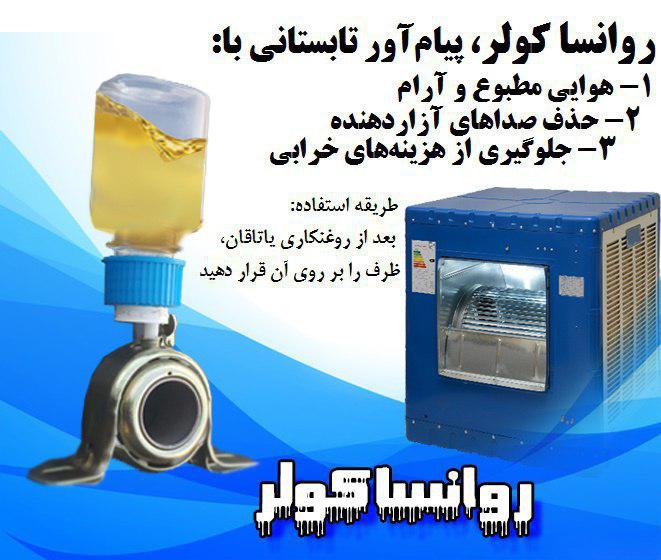 روانسا کولر ، وسیله ای کاری و مفید بگونه ای طراحی شده است که نیازی به دستکاری یاتاقان نمی باشد و کاملا بر روی آن قرار می گیرد و به صورت خود کار محور کولر را به مدت پنج الی شش ماه روانکاری می نماید در نتیجه از صداهای آزار دهنده در امان مانده و علاوه بر این ، با قیمتی بسیار اندک برای سال جاری و سالهای آینده از هزینه های گزاف تعمیرات کولر رهایی می بخشد.