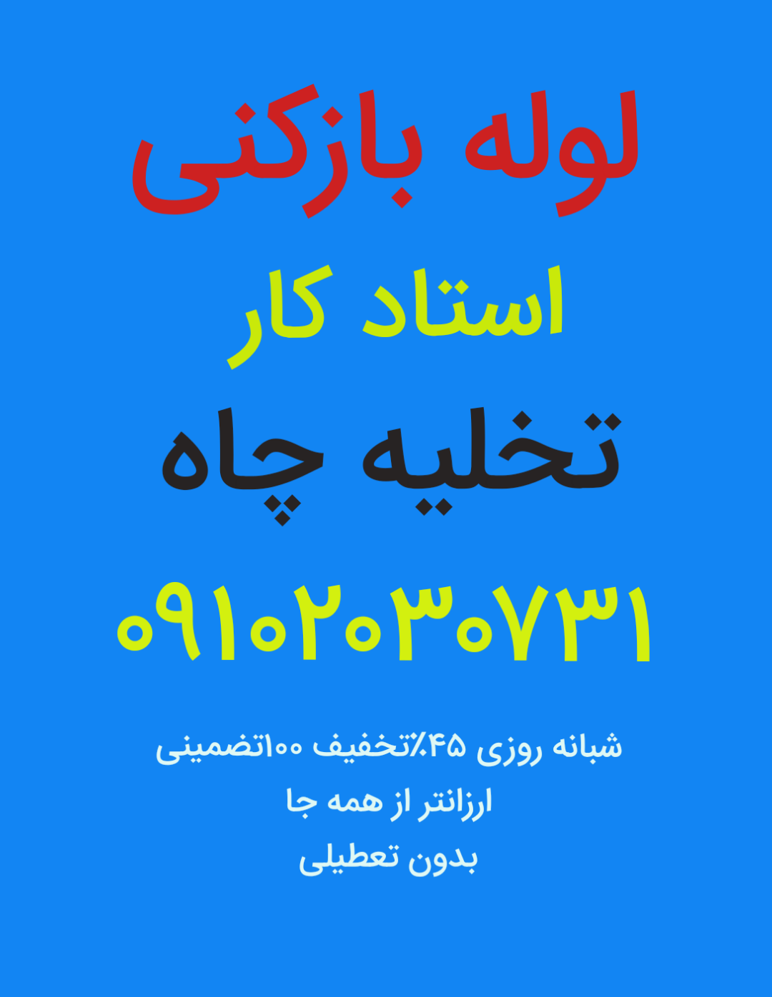بازکردن لوله های سخت و سیمانی۰۹۱۰۲۰۳۰۷۳۱ با دستگاه قوی و پمپ تراکم بدون خرابی درآوردن اشیاء از لوله ها مانند گوشی وطلا وغیره ۱۰۰٪تضمینی ۴۵٪تخفیف تخلیه چاه با تانکر ۶هزار لیتری شبانه روزی بدون تعطیلی ۰۹۱۹۸۵۳۵۰۸۰