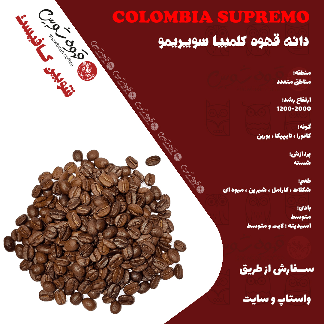 قهوه کلمبیا سوپریمو دارای طعم غنی و عطر عالی است.